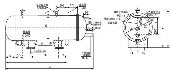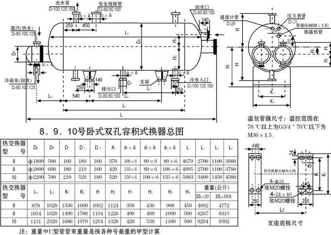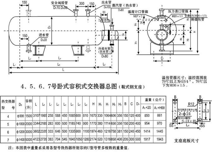 容积式换热器主要由管箱,管束,壳体,安全控制装置,温度调节器,温度计,压力表等组成。