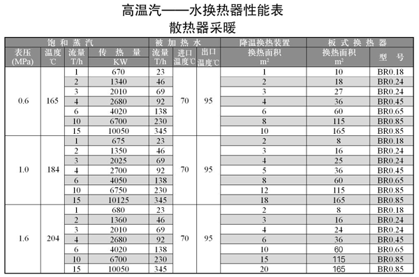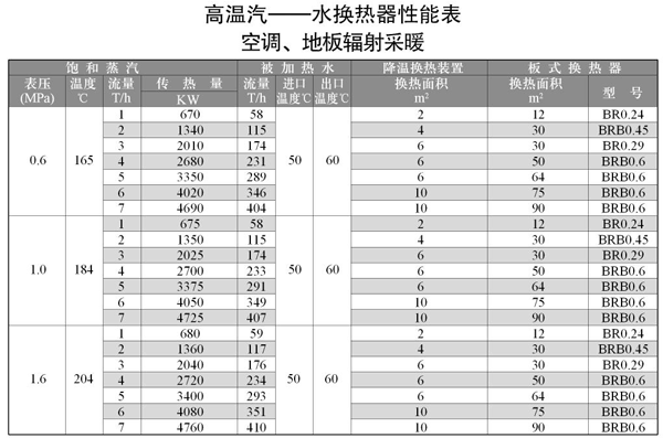 (1)根据传热学原理及产品的市场调查,推出此表,供用户选型时参考。