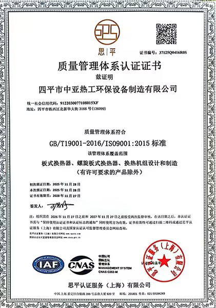 中亚公司始建于1999年,是天津市供热协会会员单位。主要产品有板式热交换器、智能换热机组 、一二类压力容器、螺旋板式换热器等。企业拥有质量、健康和环境三大管理体系认证,一二类压力容器设计、制造许可证,并获得多项发明专利和实用新型专利,被认定为吉林省高新技术企业、吉林省省级企业技术中心,多次荣获《AAA级信用企业》、《守合同重信誉》等荣誉称号。